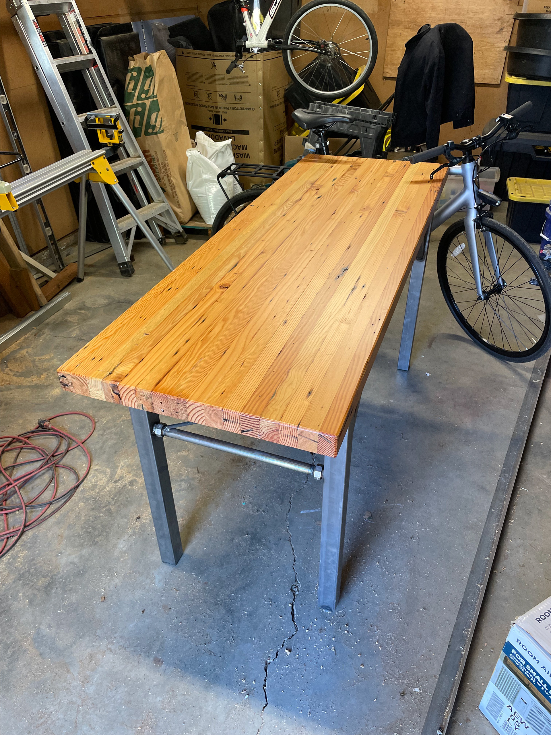 I remodeled my basement and this was half of the wood that was removed. I decided to make a bench for my garage with it. The base frame was from a welding table that I built years ago and is super solid.
